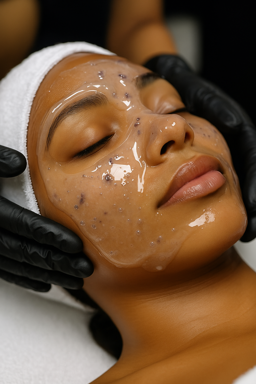 • The Signature Treatment — My most requested custom facial experience. Designed to deeply cleanse, exfoliate, and rejuvenate the skin while addressing your specific concerns. Perfect for both first-time and returning clients.